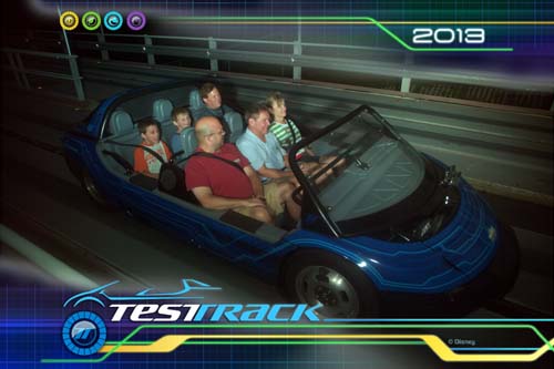 Our test track fast pass times were approaching. Kelli was getting a bit overheated so we let the others race up to Test Track to ride while we took our time shopping in the Showcase Plaza to cool off. We then waited at the end of the ride in Chevrolet interactive area. I played with one of the virtual games steering a car around a track. We met everyone at the ride photo area and added the picture to my photopass plus card.