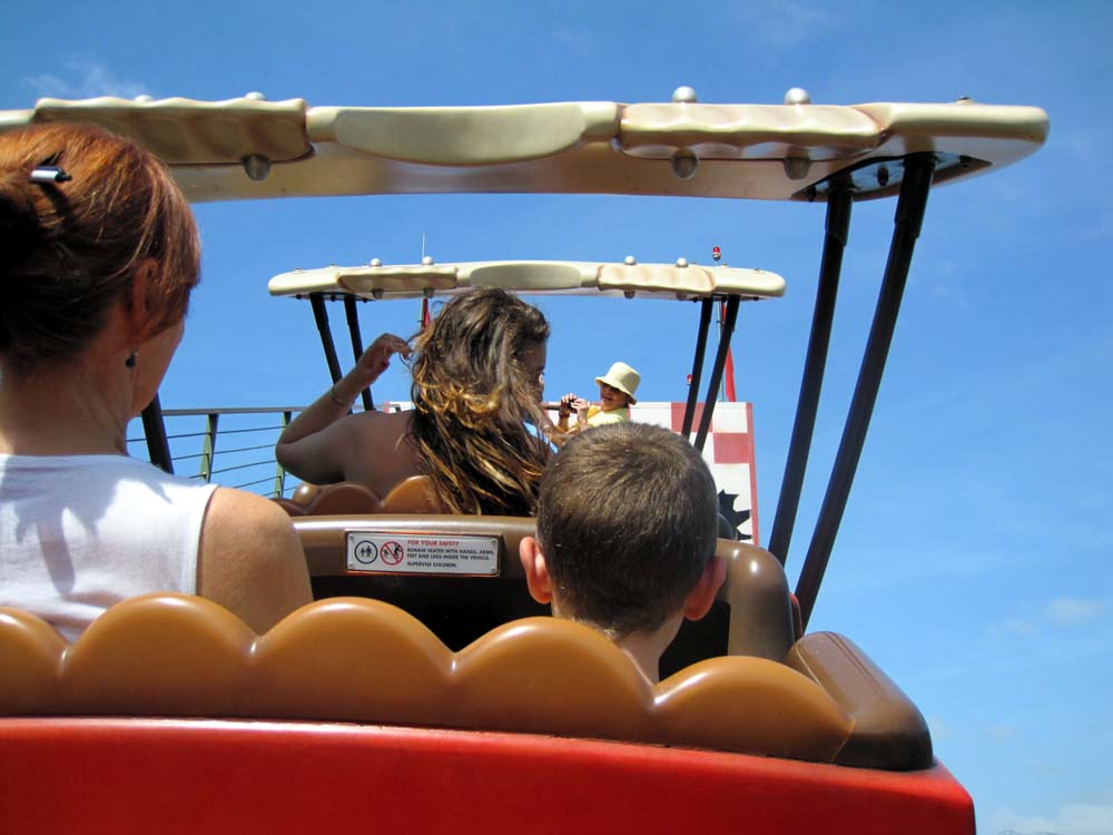 Marissa vs Tram: Marissa did not jog this morning so she decided to walk back to the car. It was too hot for Tim, Kelli and I so we took the tram. We had a too nice of a tram operator, who kept letting on a few more people, then a few more. Marissa had to wait by the car for us. We did get to see something unusual walking up our row. An SUV with a Hawaiian License Plate. Shows you how long of a drive people are willing to make to get to Walt Disney World! ;-)