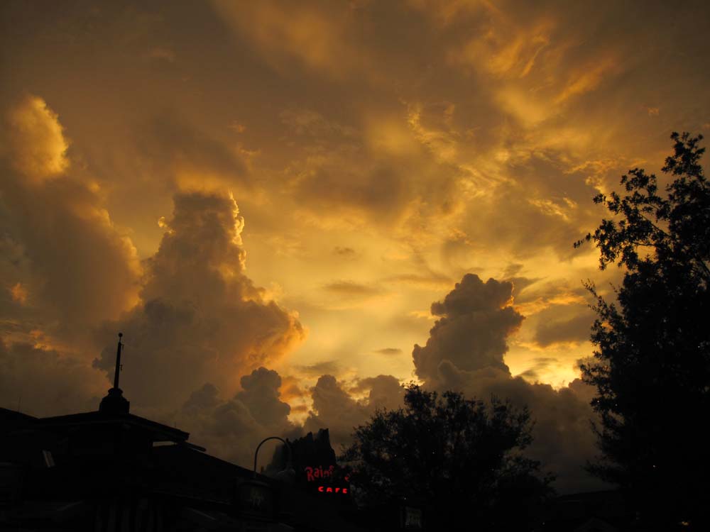 We stopped at Ghirardellis for ice cream and sat outside. The clouds at dusk looked cool and we saw the volcano over the Rainforest cafe erupt a few times.