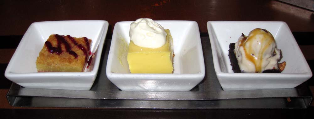 We both really like the way the Wave does dessert; they had collections of three small desserts. Kelli selected the Creamy Indulgence which had a Chocolate Truffle mousse, a NY Cheesecake, and a Coconut Panna Cotta with Passion Fruit Glaze. I enjoyed the American Flavors Trio which had an Almond Raspberry Crumble, a Key Lime Pie and a Banana Brownie Sundae.