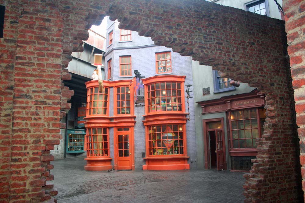 The entrance to Diagon Alley is just like the movie, you enter through an open brick wall.