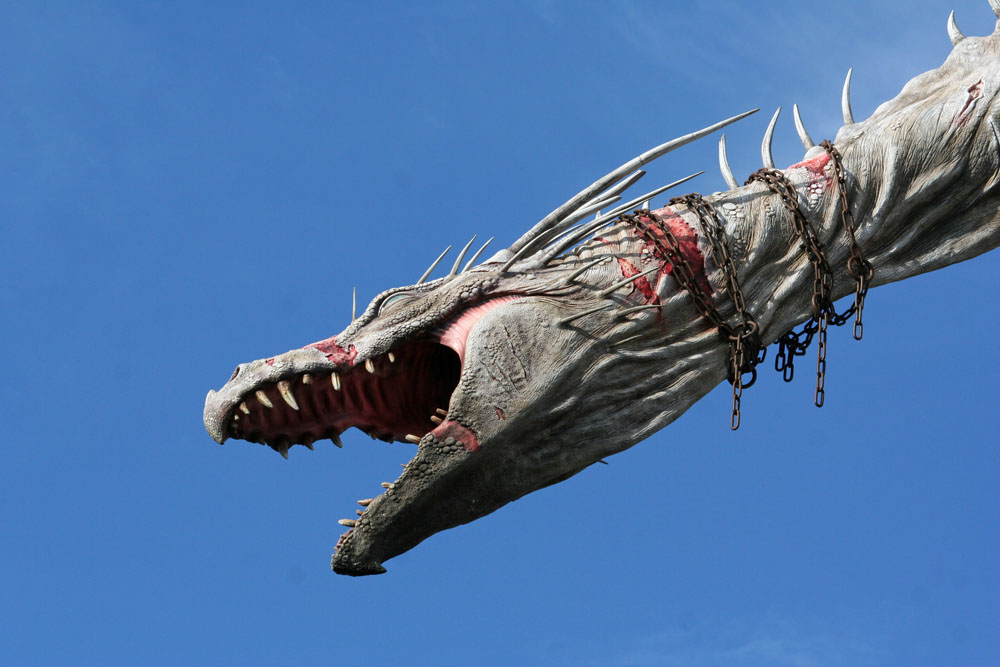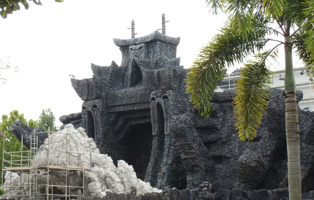 On my way to Hogsmead you could see the new King Kong Skull Island attraction rising beyond the construction walls. I did some shopping and road the Flight of the Hippogriff coaster; getting a great look at Hagrid's hut. Then onto the Dragon Challenge, this time riding the Hungarian Horntail (the old Ice Dragon Coaster). I noticed more people with interactive wands where you can cast a spell for special effects. The locations are around both Potter areas, mainly in store fronts. This is similar to the Agent P game in Epcot, except that you must purchase a special wand.