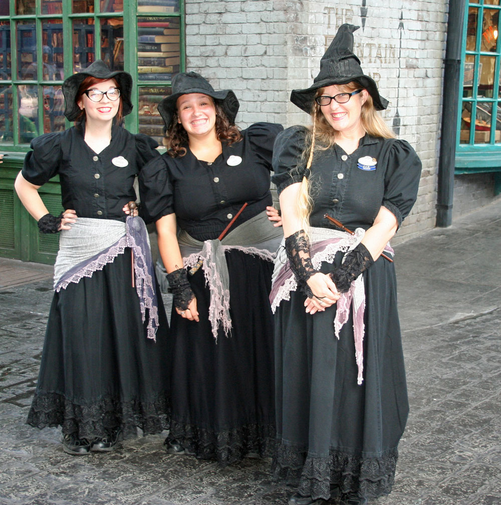 I headed back to Isle of Adventure for early entry, saving my energy by taking the boat. My goal was to take a ton of pictures and re-ride the Minion attraction. I walked to Hogsmead and again took the Hogwart Express to Universal to be ahead of the other park's crowd. Diagon Alley was empty and I was welcomed by some witches. I got great shots of the dragon from the side and a Stewed Eel Pie in a window.