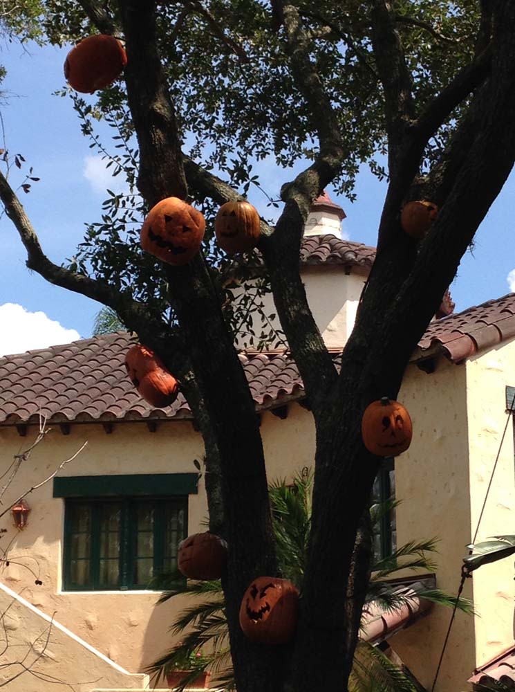 We passed some early Halloween decorations of bats and jack-o-lanterns in the trees.