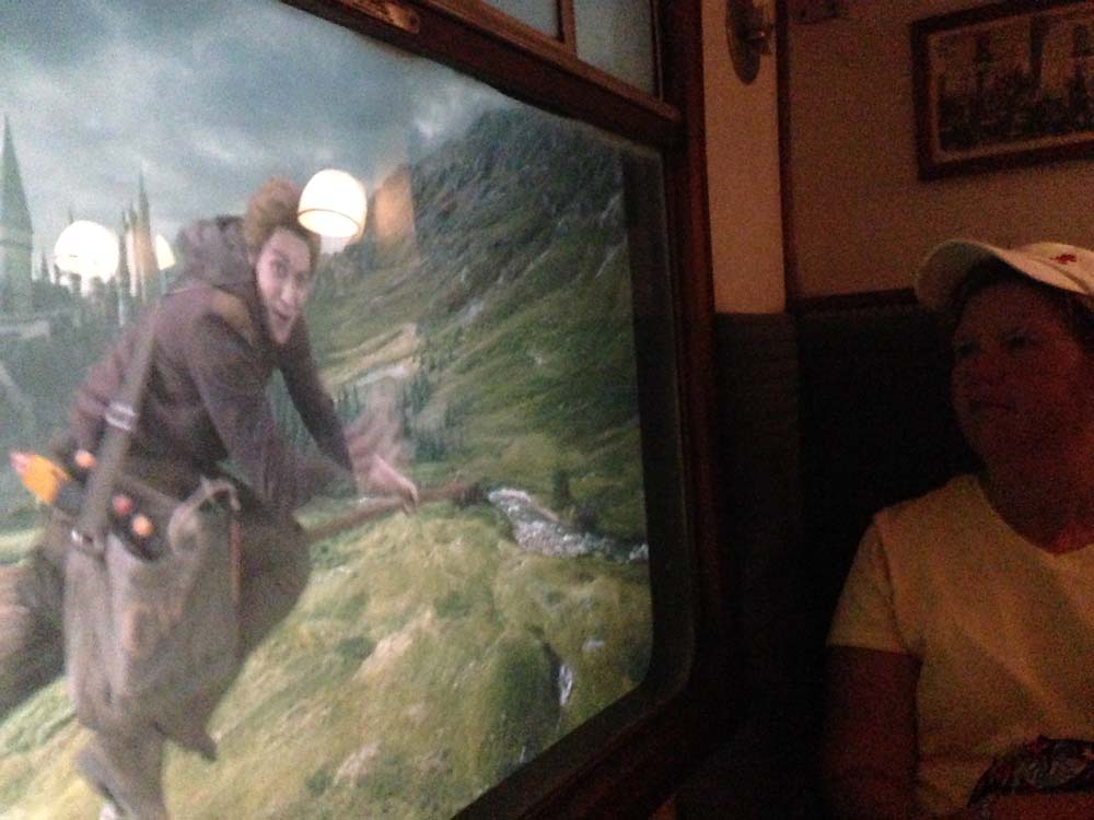 We shopped and explored. We bought a Pygmy Puff for our great niece Maddie back home. She named him Apple. I like that when you pay by credit card the wizard cashier calls it muggle plastic and to please sign for the ministry of magic.