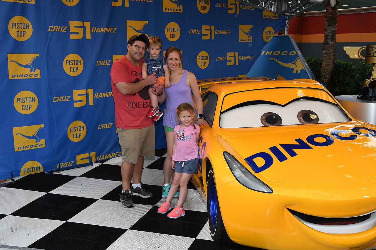 I was happy our Star tour included the planet Naboo; where a colo claw fish tries to eat our Starspeeder 1000. After regrouping, we decided to skip our 4 PM Fastpass for the Frozen Sing-Along to see the new Lightning McQueen's Racing Academy. We found it just past the Rock 'n' Roller Coaster. Maddie and Liam took pictures with Cruz Ramirez while I got a good picture of the Hollywood Tower Hotel. I was impressed with the Racing Academy. Lightning McQueen looked alive and as real as can be.