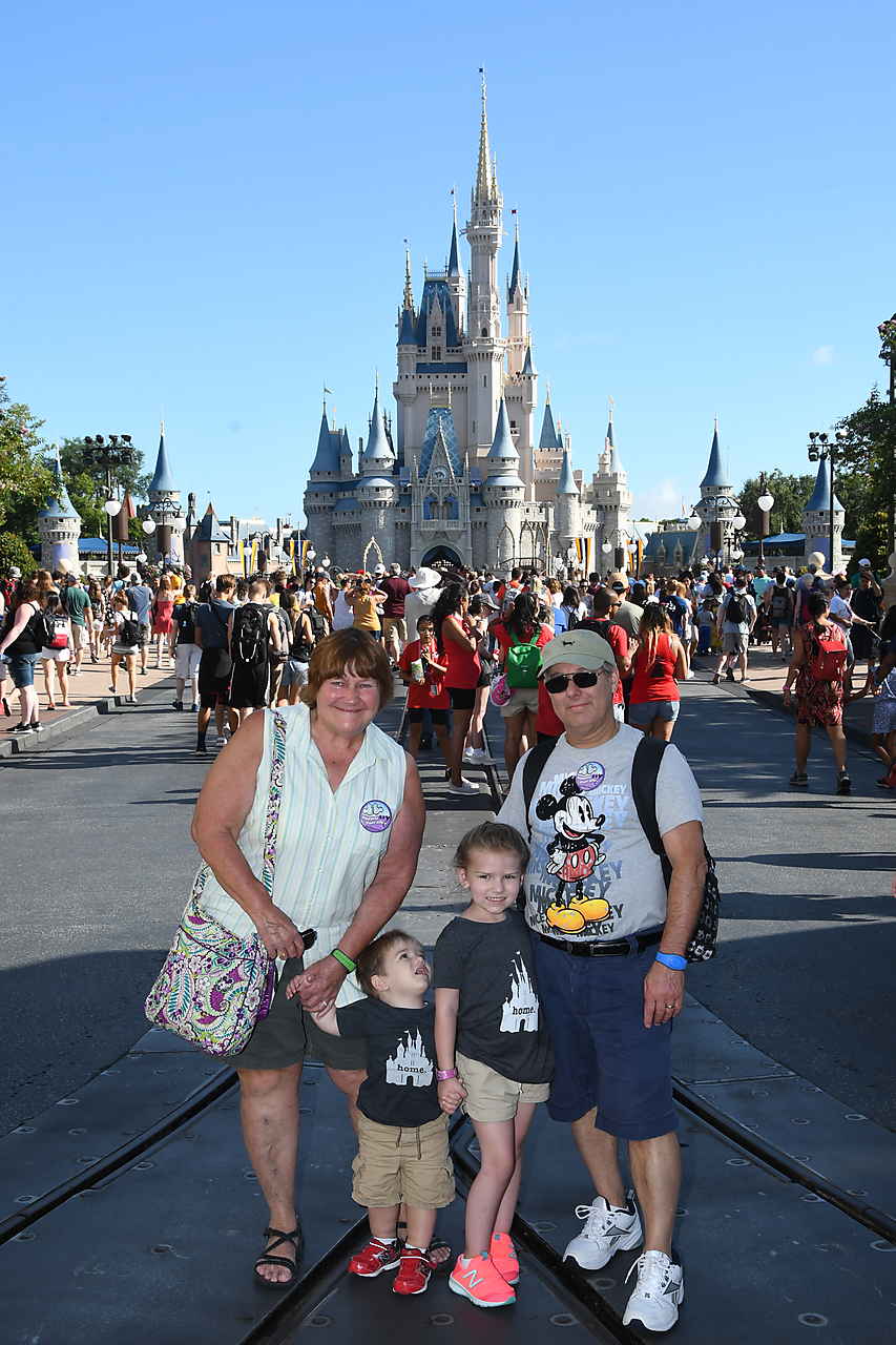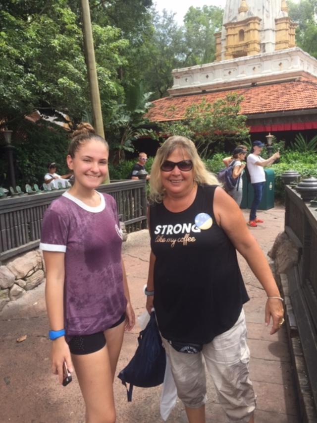 Today we head back to the Magic Kingdom. We arrived before opening and they let the crowd in early before 9 AM, but stopped us at the entrance to Adventureland. It was already hot. The plan was for some of us to ride Splash Mountain but the ride was down. Maddie was not happy as she was looking forward to riding this for the first time. So we rode Thunder Mountain twice since the lines were not that long. On the first ride Sam and I got the last seat for the greatest thrill.
