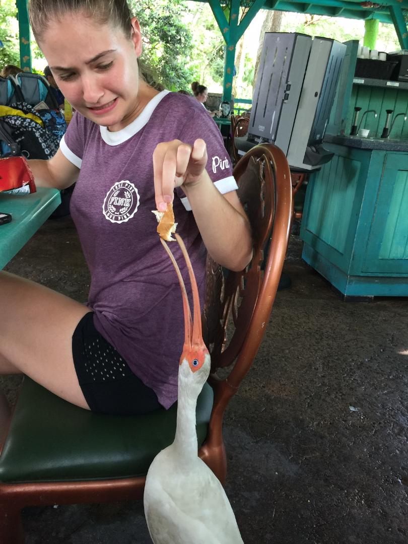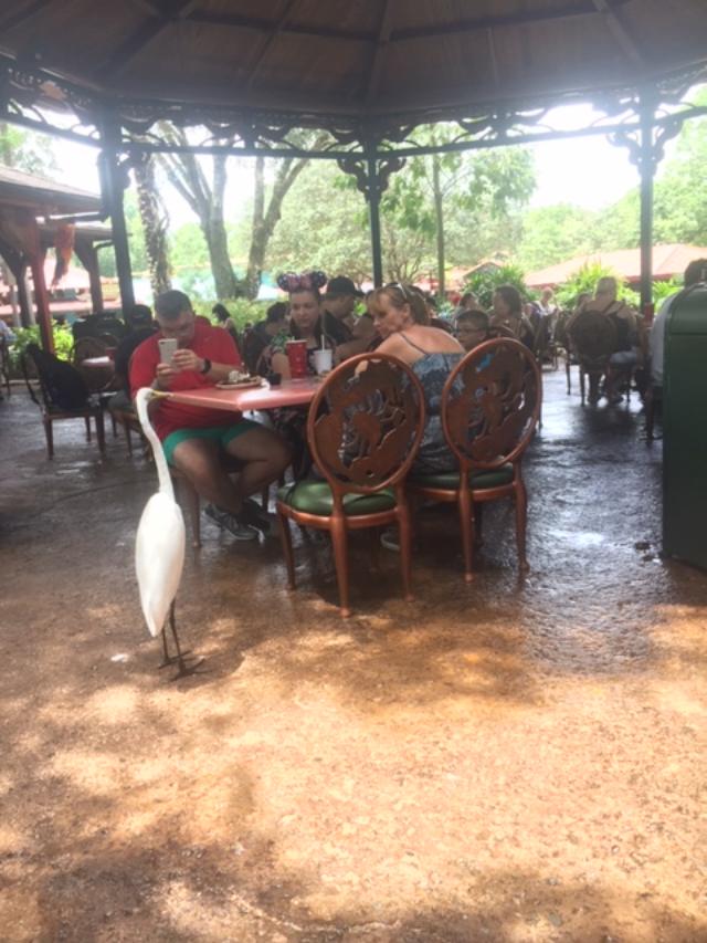 A few White Ibis paraded the eating area begging for scraps along with a very tall Great Egret.