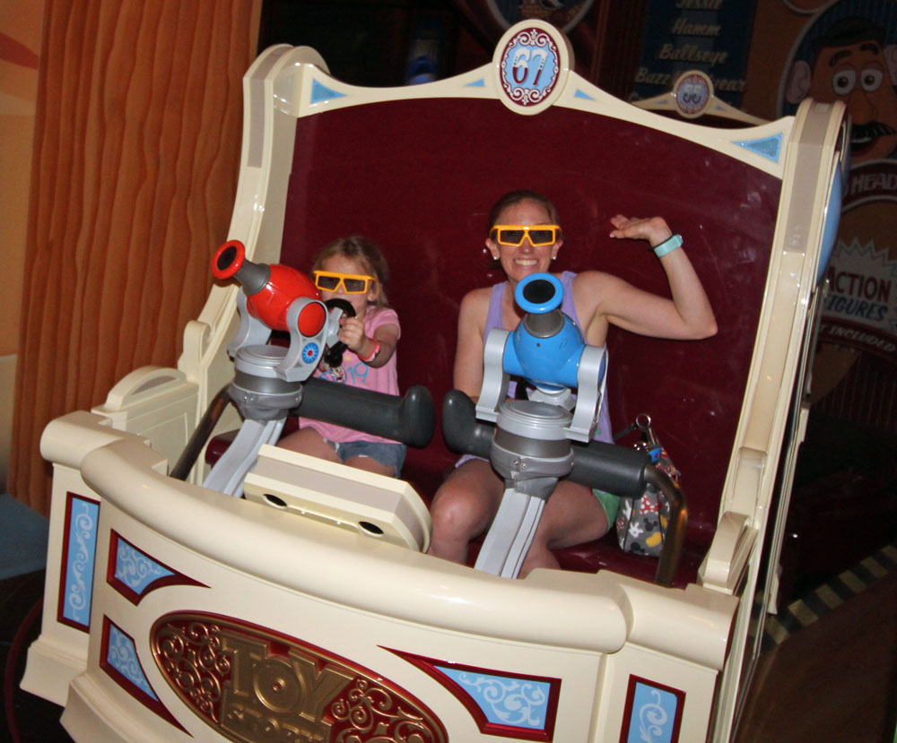 We just made our Toy Story Mania! FastPass. Part of the queue seemed to be under construction as we did not go near the room where Mr. Potato Head greets riders. I had the high score on our car at 191,600.