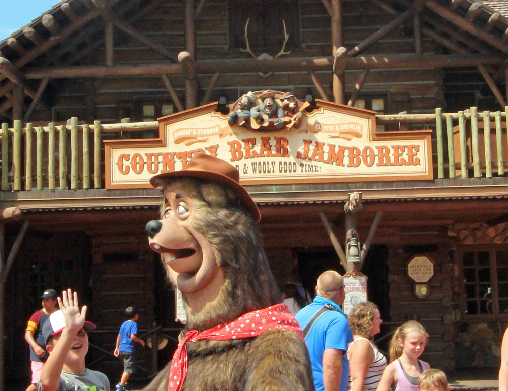 Shaker and Wendell of the Country Bears were walking around Frontierland. Ann and Sam posed for pictures locked in the stockade.