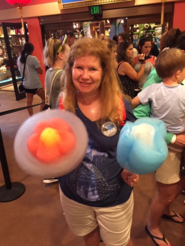We stopped in China to look for the famed cotton candy. It was in the store in the back. What we did not know is that a cotton candy artist makes them in front of you. We got two Butterfly Dreams and an Aurora Blossom. It was cool to see them made.