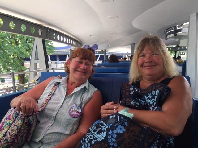 We all hit the bathrooms twice, once near the gate and once near Magical Express. This gave my sister Ann time for a smoke. Disney now does not allow smoking anywhere in the parks. She was able to manage this through our stay.