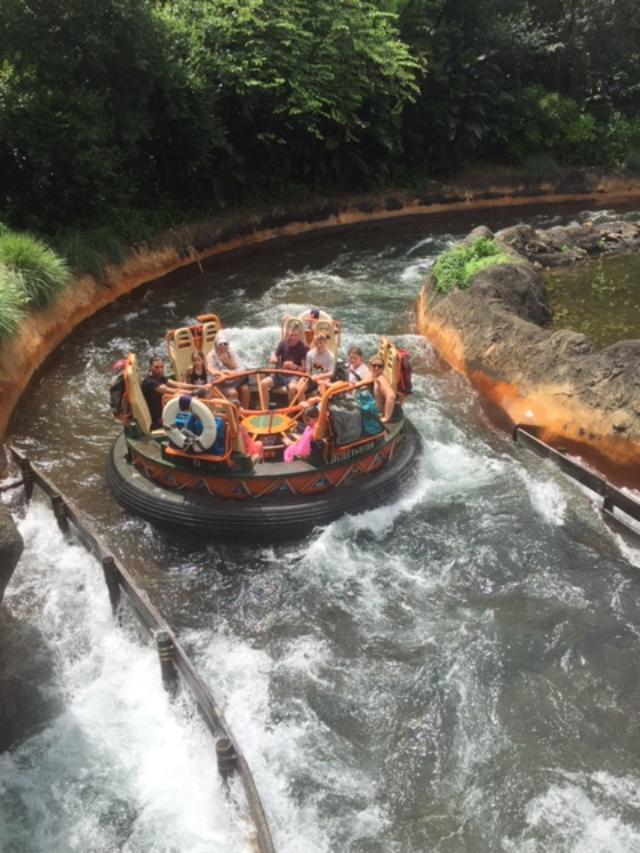 Our next FastPass was for Kali River Rapids. Ann and Sam got the most wet.