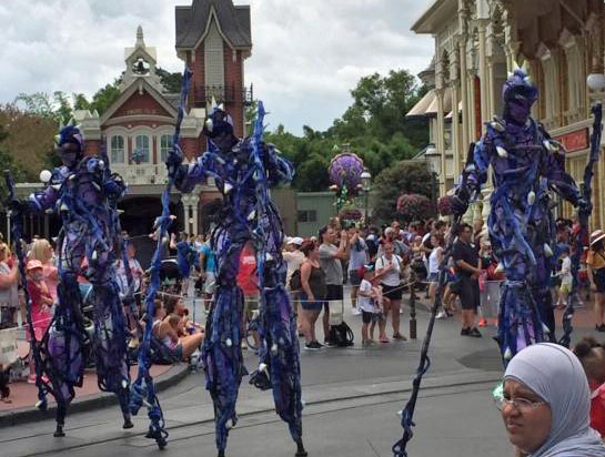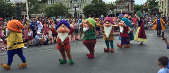 The group headed to Magic Kingdom midafternoon. Marissa, Tim, Maddie and Liam left early to catch the 3 PM Festival of Fantasy Parade. We arrived later at 3:27 PM and found them waiting outside The Chapeau still waiting for the parade. This is when people ask “When does the 3PM parade start?”