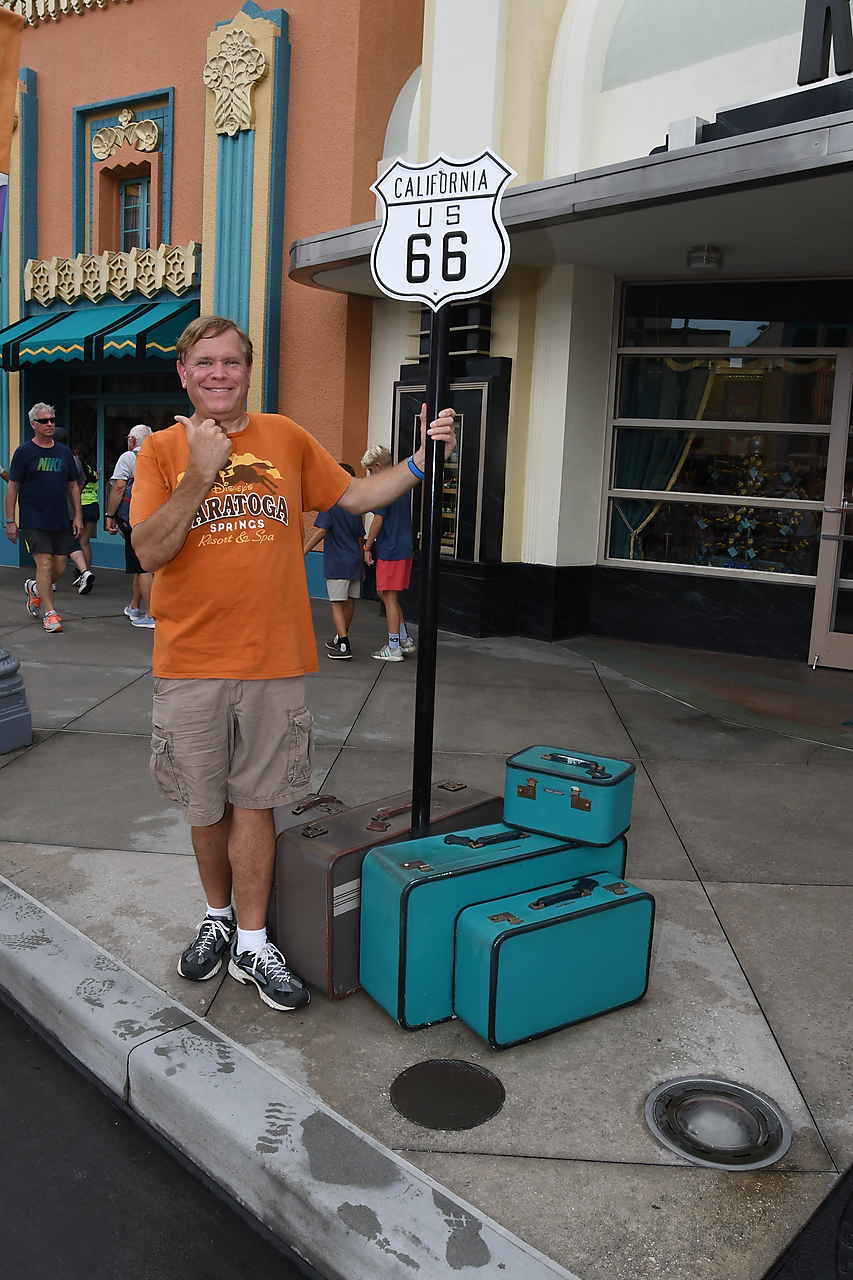 I took time to download some pictures, and then Kelli and I took a walk to Artist Pallet for shopping and lunch. We returned the long way by crossing Willow Lake using the bridge. We saw the kiddie pool area behind the man pool. We met Joan and Rich who were cooling off at the pool after coming back from the park early. In the parking lot near the pool, we saw a cool white van with storm troopers and Buzz and Woody hanging on the back, with the words “Disney or Bust.”