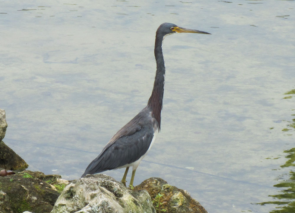 Heron in Epcot near the Mexican Pavilion. Look for the white belly under parts with blue gray back and maroonish coloration on lower neck |