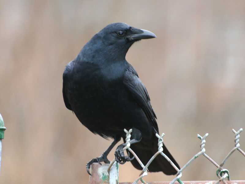 There are two crow species which look identical. The only way to tell them apart is by voice. The American Crow gives a good honest “caw”. The more common Fish Crow gives a nasal “caw”, frequently twice, as if it is saying no “uh’uh”.