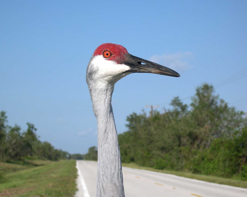 Another tall slender bird, most often briefly seen from the bus or car along the grassy areas of Disney roads is the Sandhill Crane.