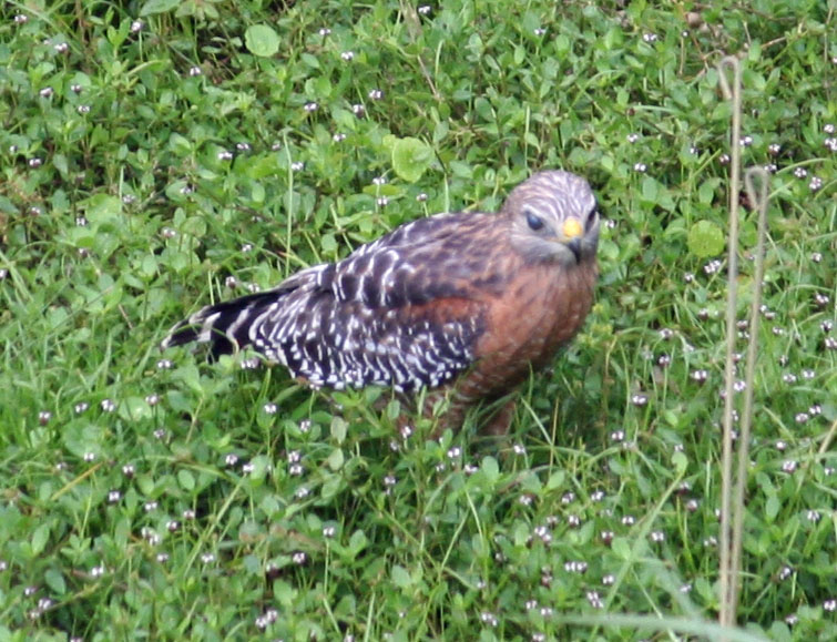 The most common hawk here is the Red-shouldered Hawk; usually seen as it flies by overhead, look for the white crescents in the wings. You might even find them hunting in savannahs at the Animal Kingdom Lodge.