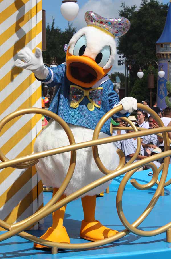 After a refreshing swim and showers, we headed back to the Magic Kingdom at 4 PM.We lucked into a Cavalcade with Mickey, Minnie, Pluto, Donald and Daisy on a double decker bus. The group took some pictures on Main Street