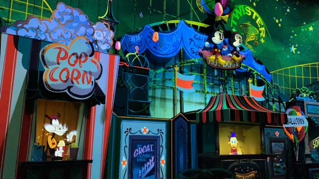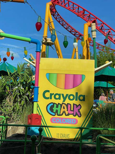 We walked over to Toy Story Mania! The line for Slinky Dog Dash coaster started well before Disney’s One Man’s Dream. Inside the queue for Toy Story, Mr. Potato Head was quiet. We did get to hear him later. We had good scores with Kelli scoring 96,700 and 124,800 for me. Next was a fun ride on Alien Swirling Saucers. The group split up with most headed to Slinky Dog Dash.