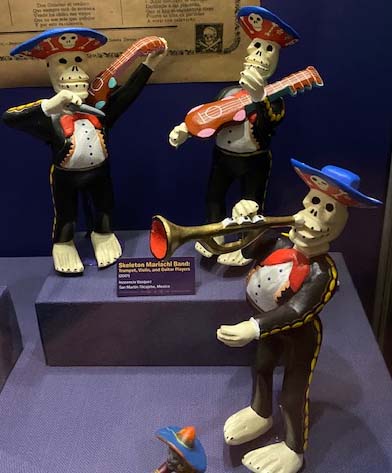 The gallery included intricately cut pieces of papel picado as well as calaveras, or decorative skulls made of sugar. In the middle of it all was the iconic sculpture Bridal Couple. Off to the side there was a place to digitally design your own Dia de Los Muertos Skeleton.