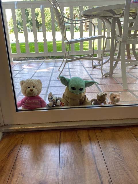 Meanwhile Kelli had fun positioning and photographing some of the stuffed toys back at the resort for all of us to see.