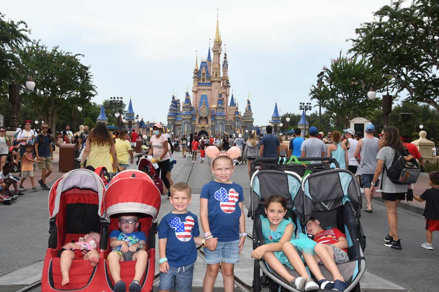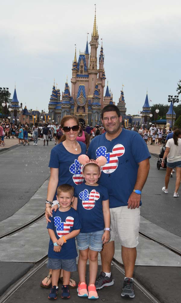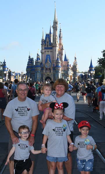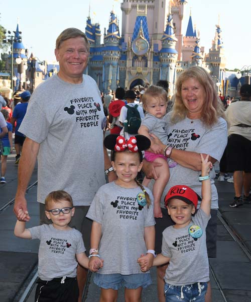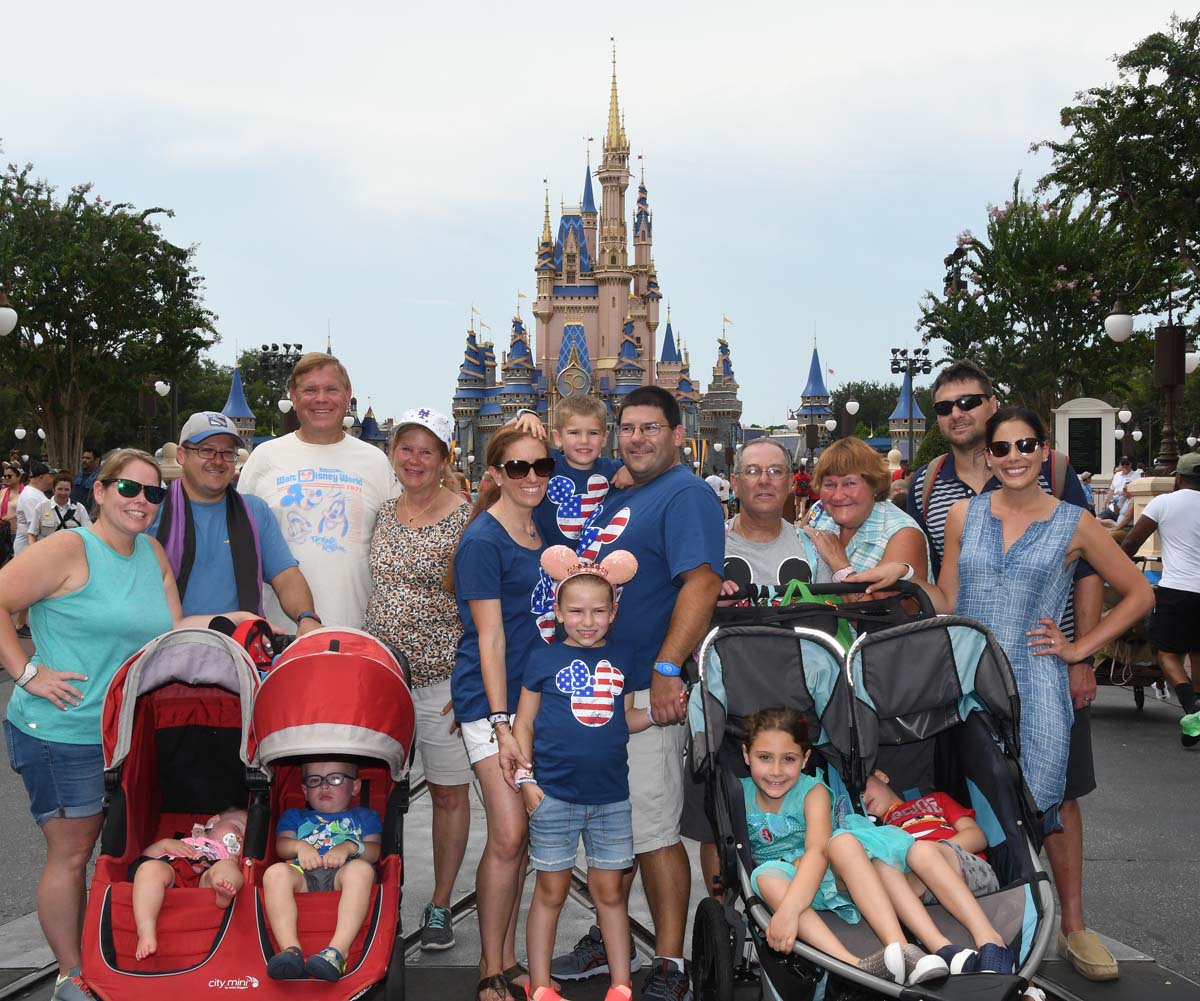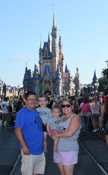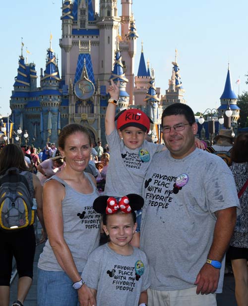 We were at Magic Kingdom early once again and were let into and down Main Street at 8:30. Marissa and Caitlin hit the Starbucks and we took another group picture in front of the castle. Kelli and I got a nice picture with four of our great-nephews and great-nieces.