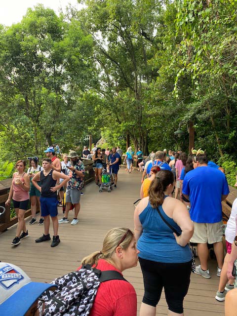 The line was already long for Avatar Flight of Passage. It took 45 minutes to get to the floating mountains, and another 40 minutes to get on the ride.