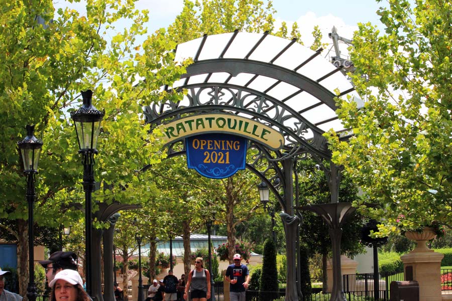 We found out that the France theater switches from Impressions de France to Beauty and the Beast Sing-Along during the day. So, we sang along. We also noticed the entrance to the new Ratatouille ride coming in September.