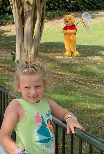We met Kevin, Caitlin, Dylan and Hannah at the park entrance, with Joan and Rich. Mickey was on a building veranda nearby saying hello to the crowd below. Madeline and Hunter headed back with their parents for a princess makeover back at the resort.