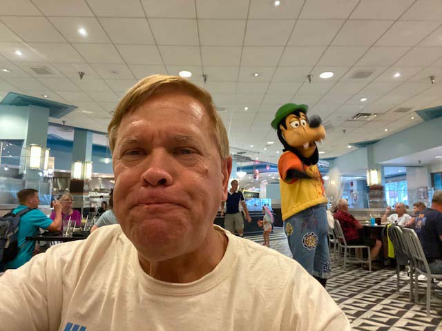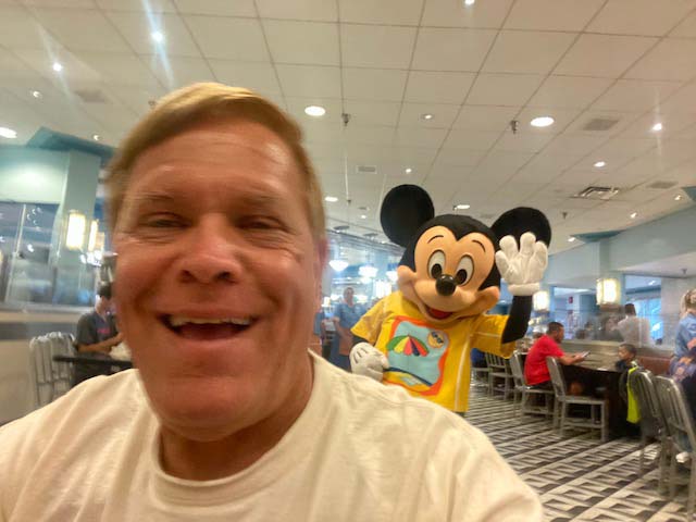 Mickey, Minnie, Goofy and Pluto visited us from afar in their summer attire. Since I was facing away from the floor, I took some selfies with the characters behind me. They were great at interacting with the kids from a distance.