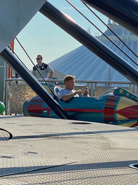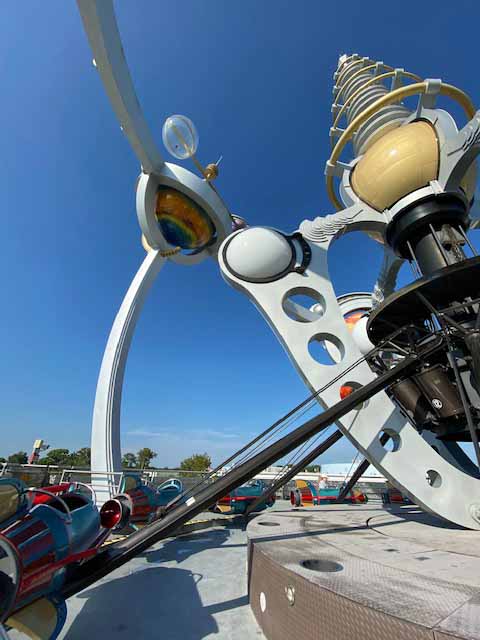 Most of us were never on the Astro Orbiter and were excited to ride it. We had a short wait up the elevator. Woah, what a ride. It was slightly dizzying with a fast-tight turn and way more fun then I remember.