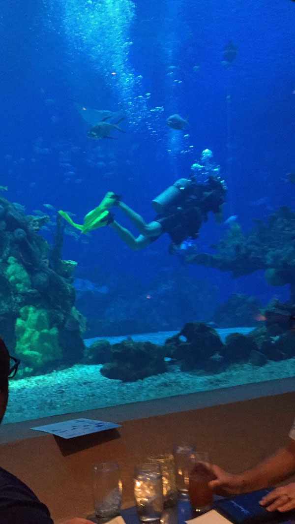 We had a 5:00 PM ADR for Coral Reef Restaurant with the Candlelight Processional package. We had a moderate wait and were seated on the lowest level close to the aquarium.