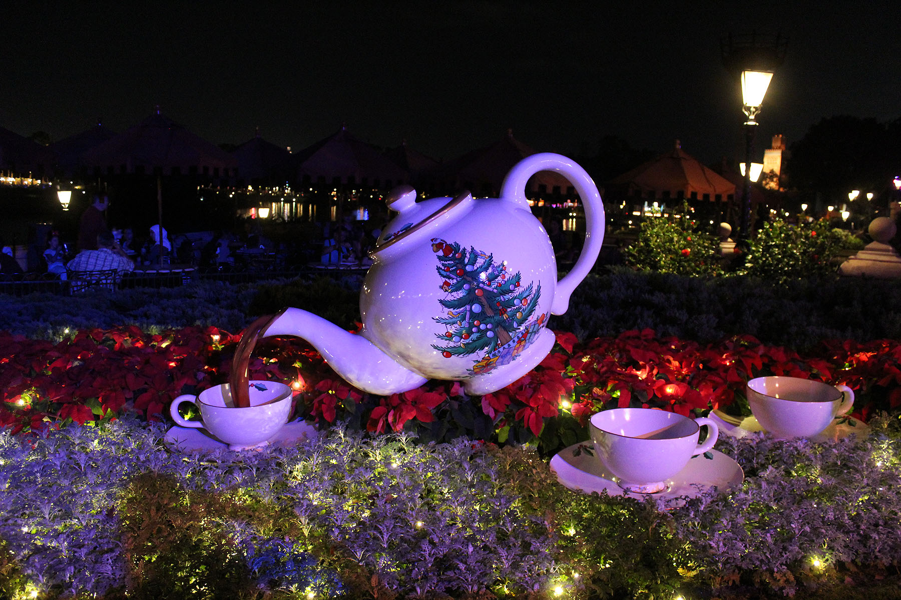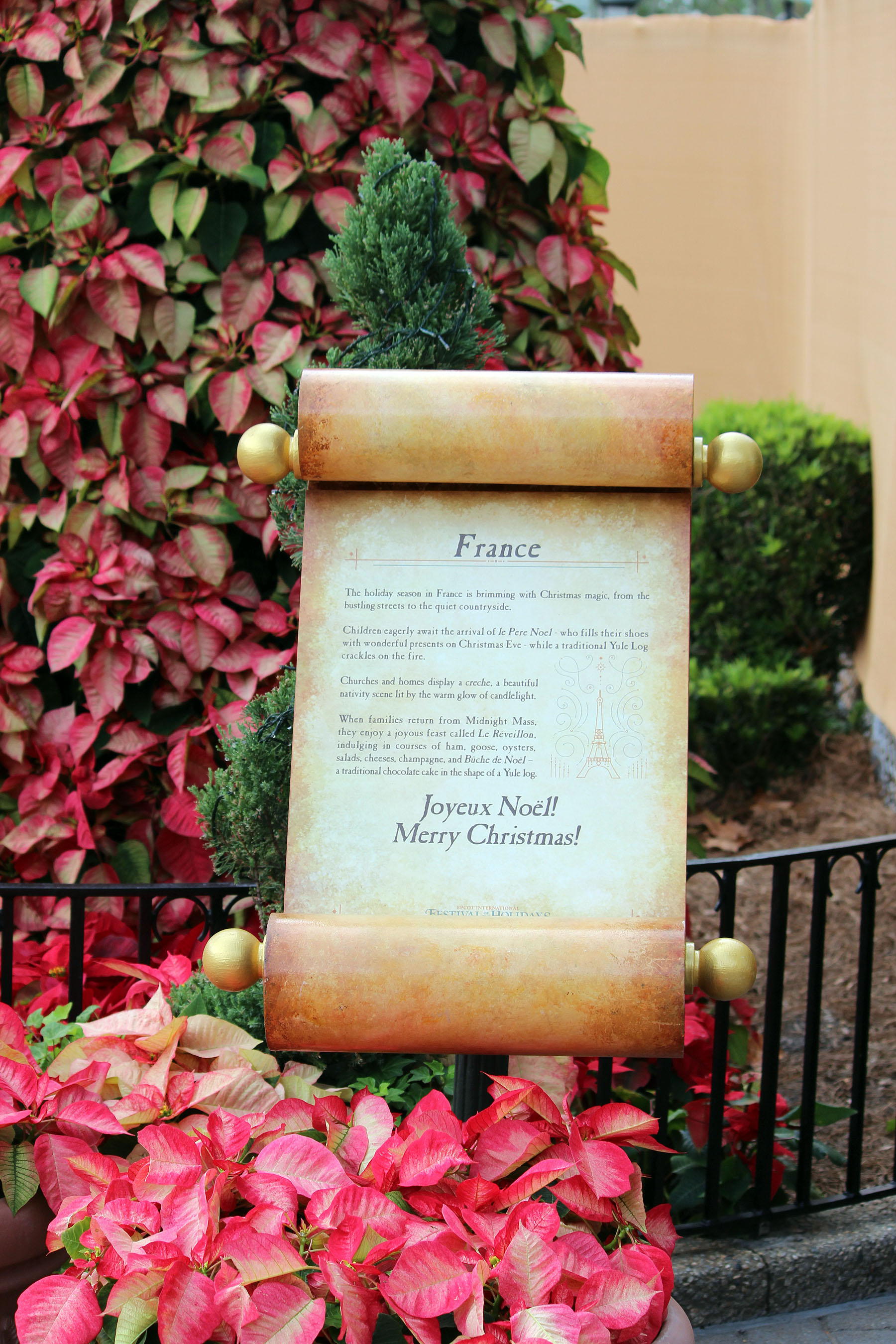 As part of Holiday Extras – Epcot had Holiday Kitchens – kiosks with holiday culinary traditions of different nations. In France we enjoyed Bouchee a la Reine Traditionnelle: Turkey and Mushroom in Veloute Cream and puff pastry and the Buche de Noel au Chocolat “Christmas log” – Chocolate cake with Dark Chocolate Caramel Ganache.