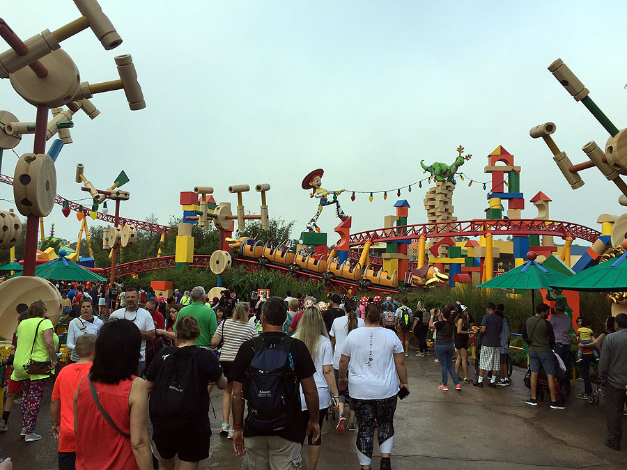It was an early wake up followed by another breakfast on the balcony, then some birding around the resort. It will be a long day tomorrow so the plan was to see the new Toy Story land then relax for most of the day. We arrived at Hollywood Studios at 9 AM. The construction of the gondola system had the bus area a half a mile back from the entrance but we were lucky that the Saratoga Resort bus stop is closest to the entrance. We headed straight to the new Toy Story area.