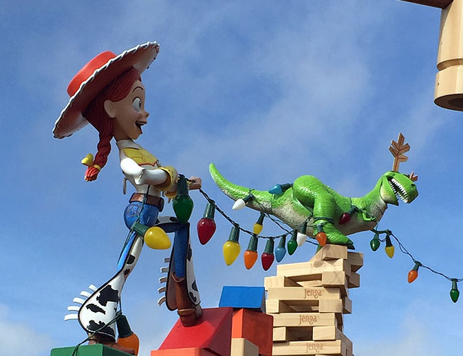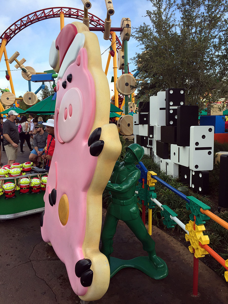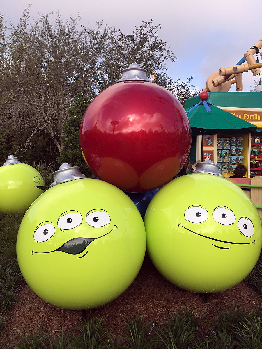 Toy Story Land had a light Christmas Overlay. My favorite was a Ham Christmas cookie held up by a green army man.