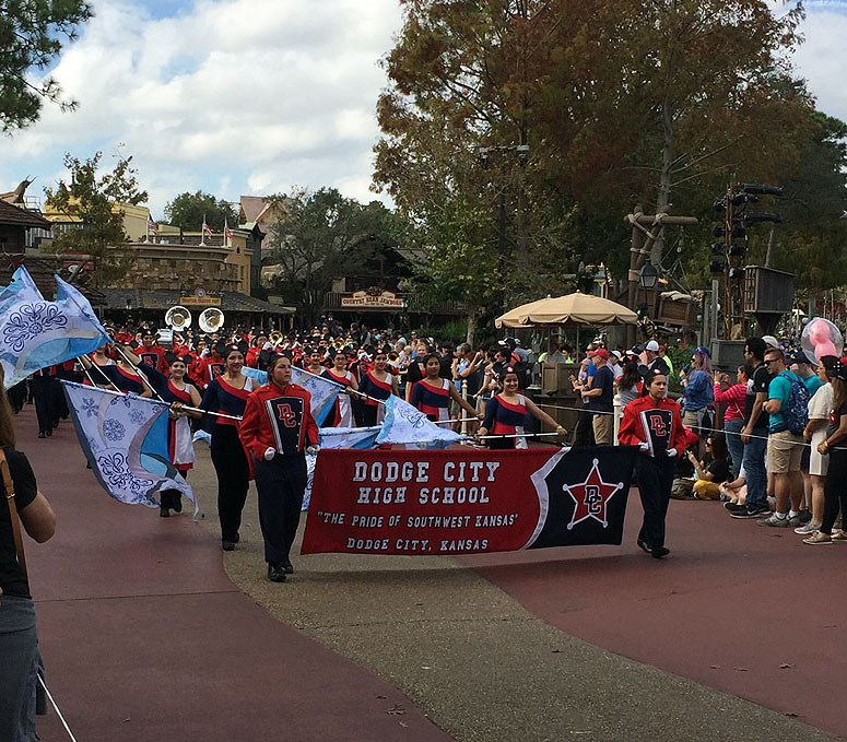 We had to move for the parade since we were in the wheel chair section. Before the parade, two school bands played along the parade route; Grandview High School "Blue & Gold Brigade" Marching Band from Missouri and the Dodge City High School "The Pride of Southwest Kansas".