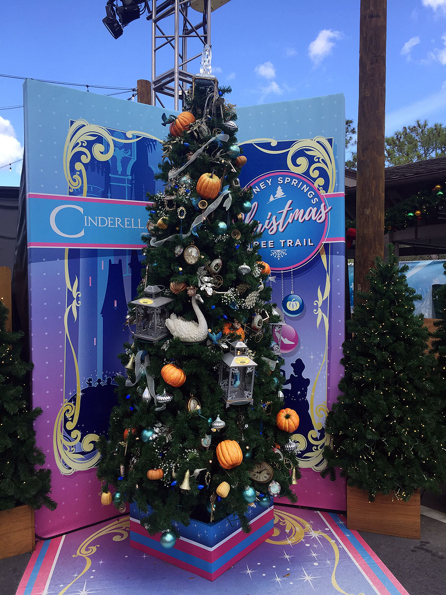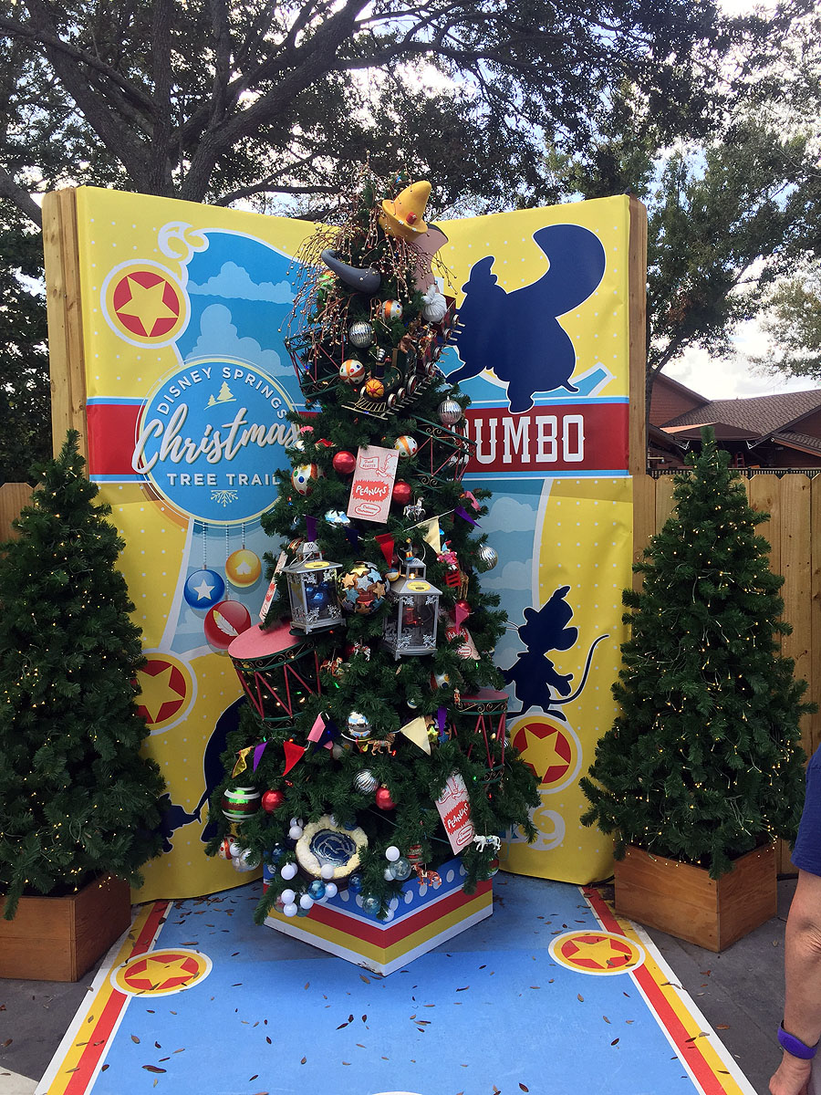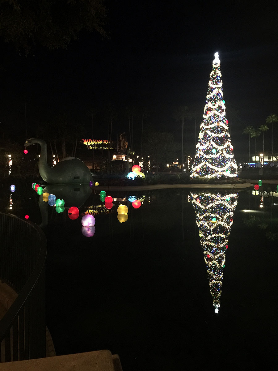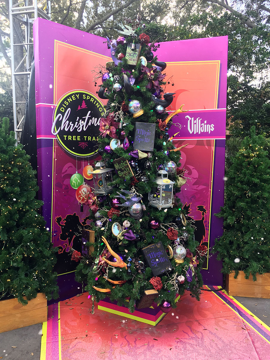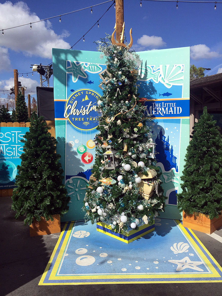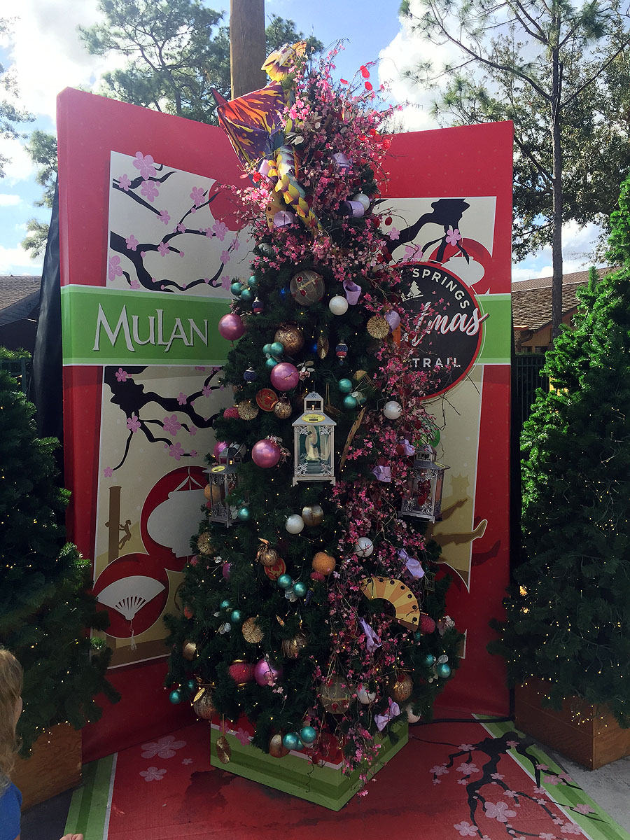 We walked over to Disney Springs to the Christmas Tree Trail. The location is where the old bus depot off East Buena Vista Drive used to be. It features 27 Christmas Trees decorated by a Disney theme. Some examples are Toy Story, Frozen, The Muppets, Tangled (with a frying pan in the tree), and Haunted Mansion. My favorite was the Monorail themed tree.