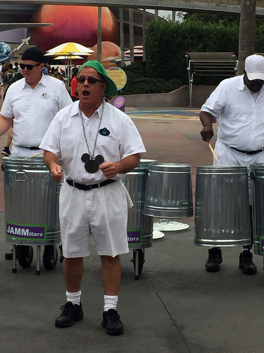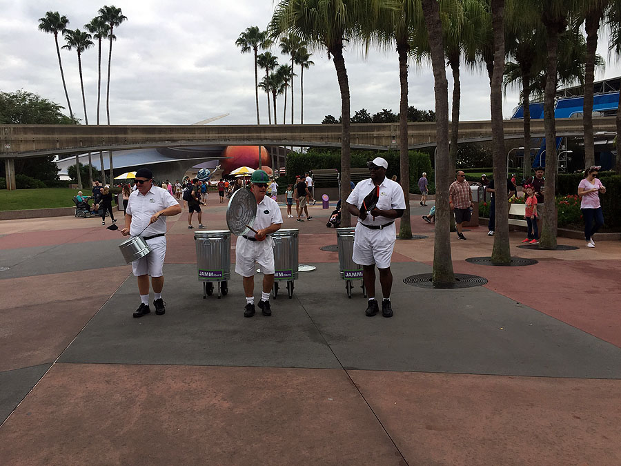 On the way to ride Mission Space the JAMMitors started their act. It was enjoyable as ever. Both of us got Jr Jammitor stickers after their performance. My ride on Mission space, orange side took longer than expected, but Kelli enjoyed shopping and people watching in the shade outside.