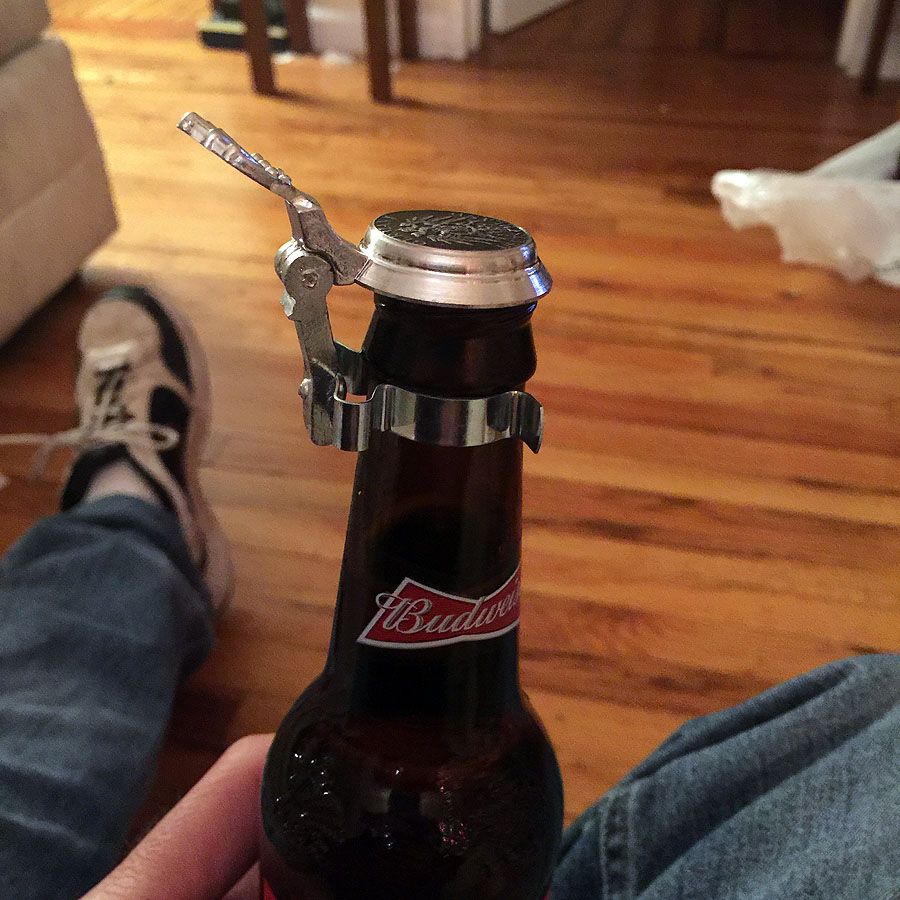 In Germany Kelli brought me a small glass boot in Glas Und Porzellan Shop along with these cool pewter bottle toppers.