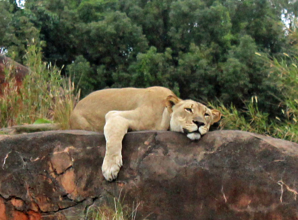 We arrived at 10:15 AM and headed over to Kilimanjaro Safaris. The standby line was way out to Tusker House, a 2 hour 25 minute wait. Fortunately we had a fast pass and had good looks at a baby giraffe and both male and female lions.