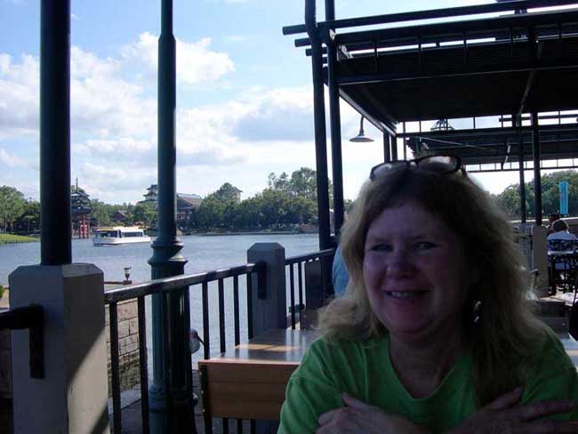The park crowd was very light and we were able to wait for a table at the Rose & Crown. We shopped in United Kingdom while waiting for the buzzer to go off; it was a short wait, about twenty minutes. They sat us outside by the water.