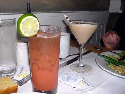 Tonight's special was calimari. We’ve eaten here before and we were again pleased with the food. The calamari and fish were perfectly cooked - too many restaurants overcook them. The ribs also hit the spot. For drinks I tried a Captain's Rum Runner- Captain Morgan original spiced rum, blackberry brandy, créme de Banana, and tropical juices topped with a float of Myers's original dark rum. Kelli ordered a Godiva martini.