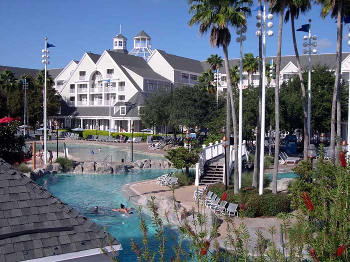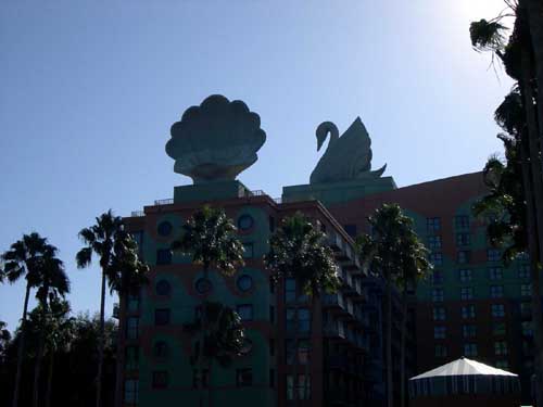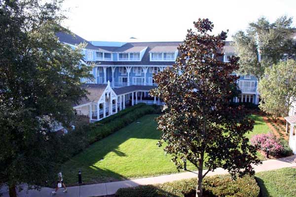 Wow, we had a one bedroom villa on the third floor for just the two of us. Towels in shape of Mickey greeted us on the bed. The balcony overlooked the courtyard heading to the main building, great for people watching. Having all this