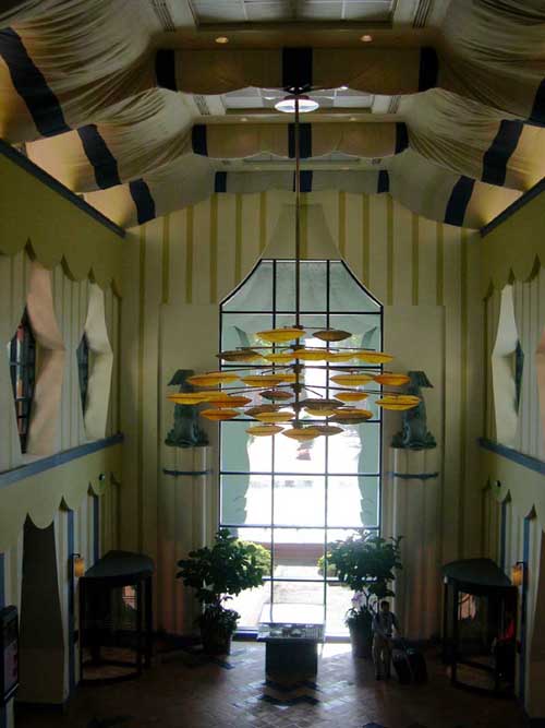 More Christmas decorations had gone up. The light poles at both the Beach and Yacht Clubs were adorned with garland, making for very festive entrances. I walked around the lake taking pictures stopping at both the Swan and Dolphin to view their lobby’s and check out their gift shops. I brought Kelli a little gift for the day, a vinylmation jr key chain in the “It’s a Small World” series. Next stop was the Boardwalk, making vinylmation trades where I could.