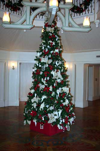The Grand Floridian lobby was decorated and we could see the gingerbread house from the upper level. We stopped in the White Basin shop first. This place is good to know incase you can’t get to Downtown Disney for the regular basin shop. We wanted some bath items for the whirlpool back at the villa and some specialty soaps for gifts. We also got a nice discount here by being DVC members. We headed downstairs to get a better look at the huge gingerbread house and the lobby Christmas tree. We noticed that some sort of tea party was in progress nearby – but I thought that only took place in the afternoon. We also looked through some of the finer shops downstairs, and then checked out Mickey Mouse Mercantile on the second floor before getting back on the monorail.