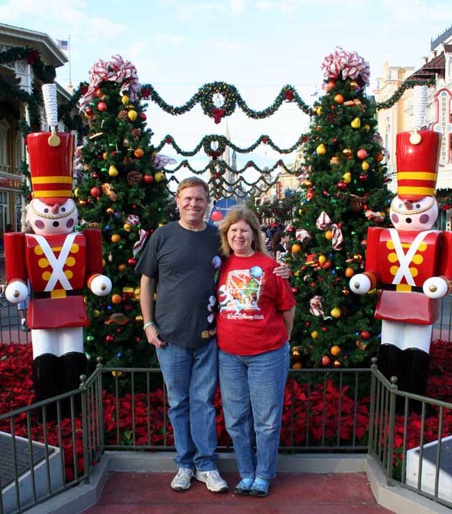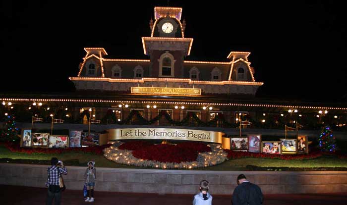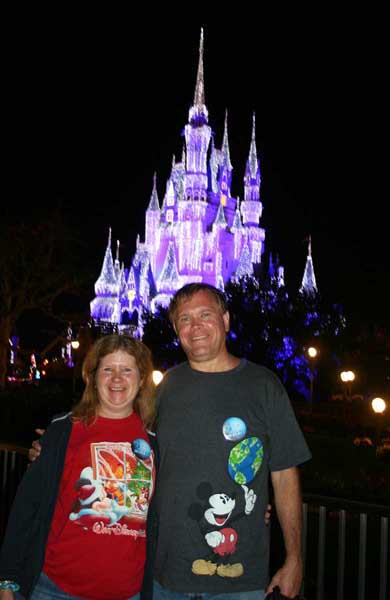 We let the parade crowd dissipate then shopped our way down Main Street. We went up to the train station to take more pictures, this time at night and then a few quick pictures in front of the Magic Kingdom, We left at 11:30 PM and after a moderate wait for the bus, and multiple stops at Epcot resorts we were back in the room and in bed half past twelve.