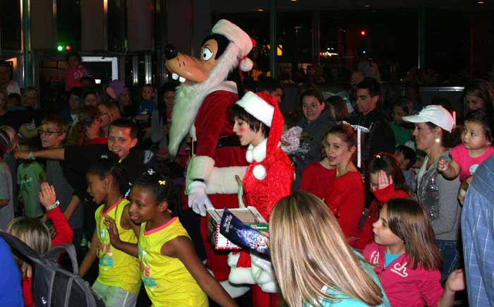 bracelets to make sure everyone bought tickets to the party. We saw Goofy in his Santa outfit and Pluto dancing with the crowd at Cosmic Ray’s Jingle Dance and Play and stayed for the music and people watching. The