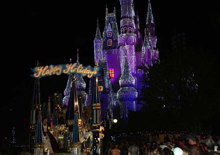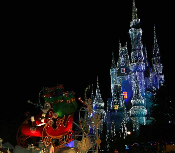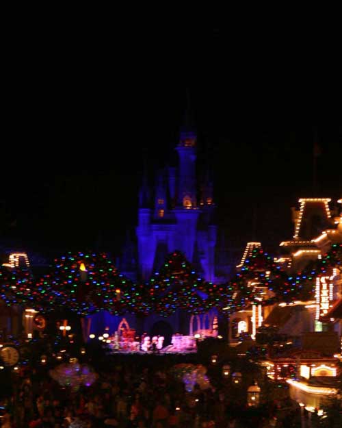 after getting a photo of us with then castle from a Disney photographer, we positioned ourselves just at the edge of the hub. We really enjoyed the show then waited for Mickey’s Once Upon a Christmas parade.